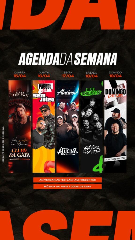 Pagode, samba, sertanejo e pop rock ao vivo, e um leque de operações que agradam todos os gostos – vinhos, cervejas artesanais, drinks criativos, shots especiais, comida caprichada e um bar esportivo para quem não perde um bom jogo.